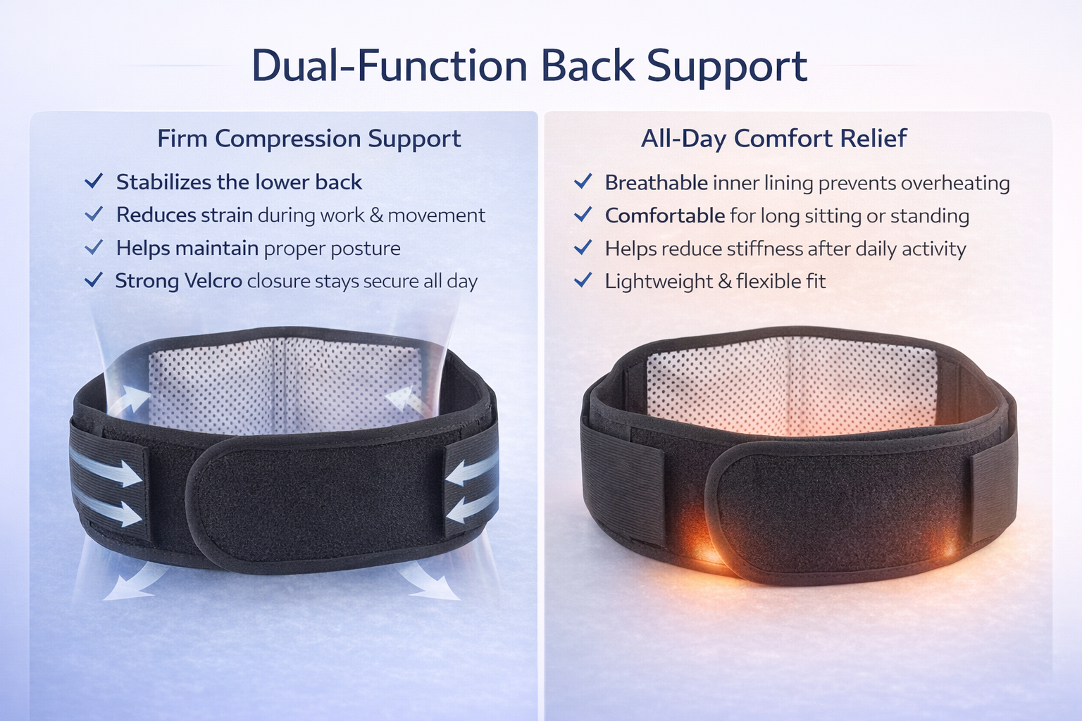 Crafted from soft, flexible materials, the belt stays securely in place without restricting movement. Whether you’re working, driving, or resting at home, it’s designed to support daily comfort and relaxation.
